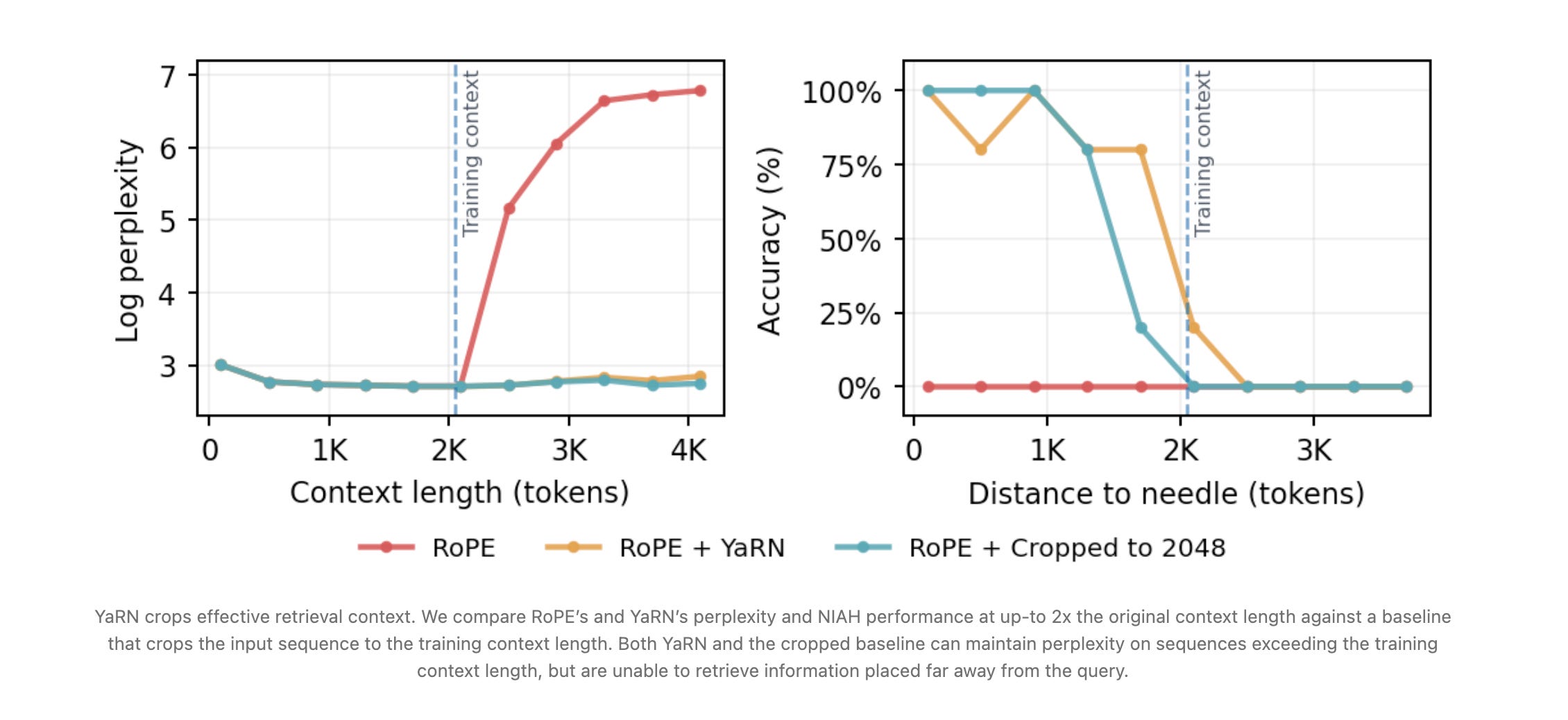 Scale validation: Tested on models from 360M to 7B parameters, including Llama2-7B, achieving seamless context extension to 2x training length using only 0.5% additional pretraining.