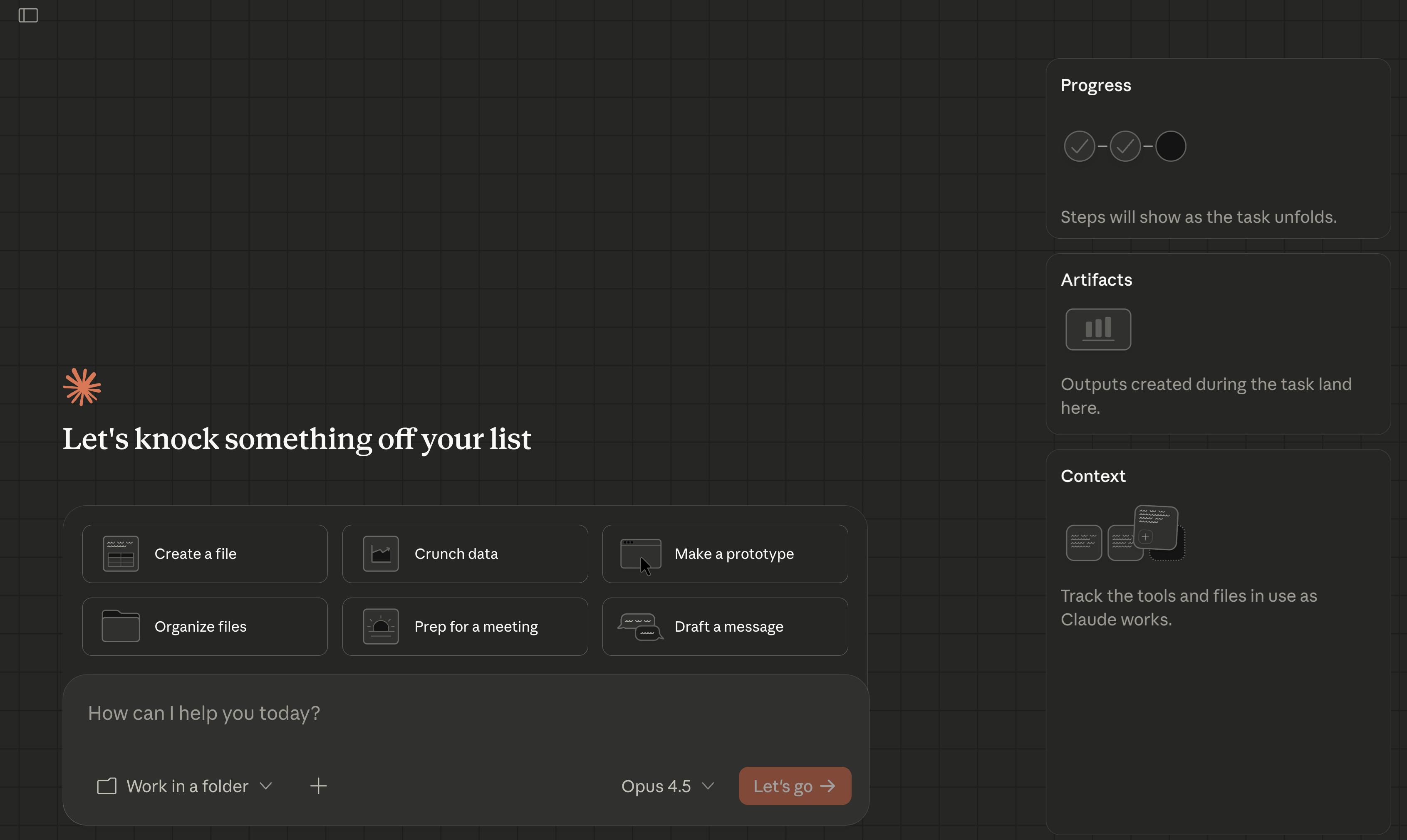 Autonomous file operations: Users give Claude access to a folder, and it can read, edit, or create files autonomously while keeping users informed of progress—no need to manually provide context or convert outputs.