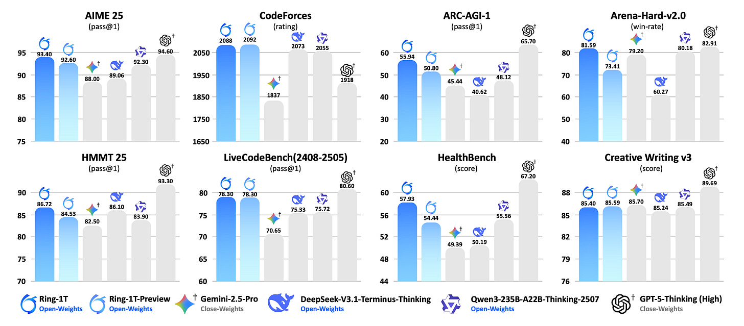 Ring-1T is the first open-source thinking model with 1 trillion parameters (~50B active per token), achieving breakthrough results through three innovations for trillion-scale RL training.