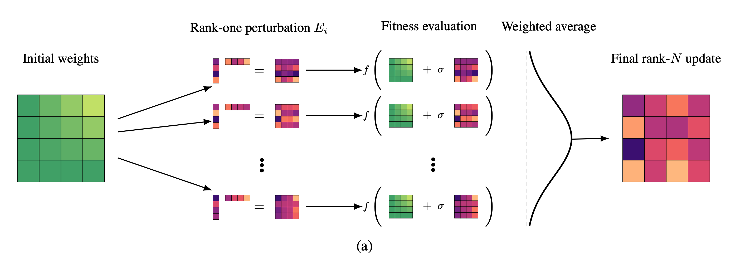 EGGROLL (Evolution Guided General Optimization via Low-rank Learning) is an evolution strategies algorithm designed to scale backprop-free optimization to large population sizes for billion-parameter neural networks. By using low-rank matrix perturbations instead of full-rank ones, EGGROLL achieves a hundredfold increase in training throughput while nearly matching pure batch inference speed.