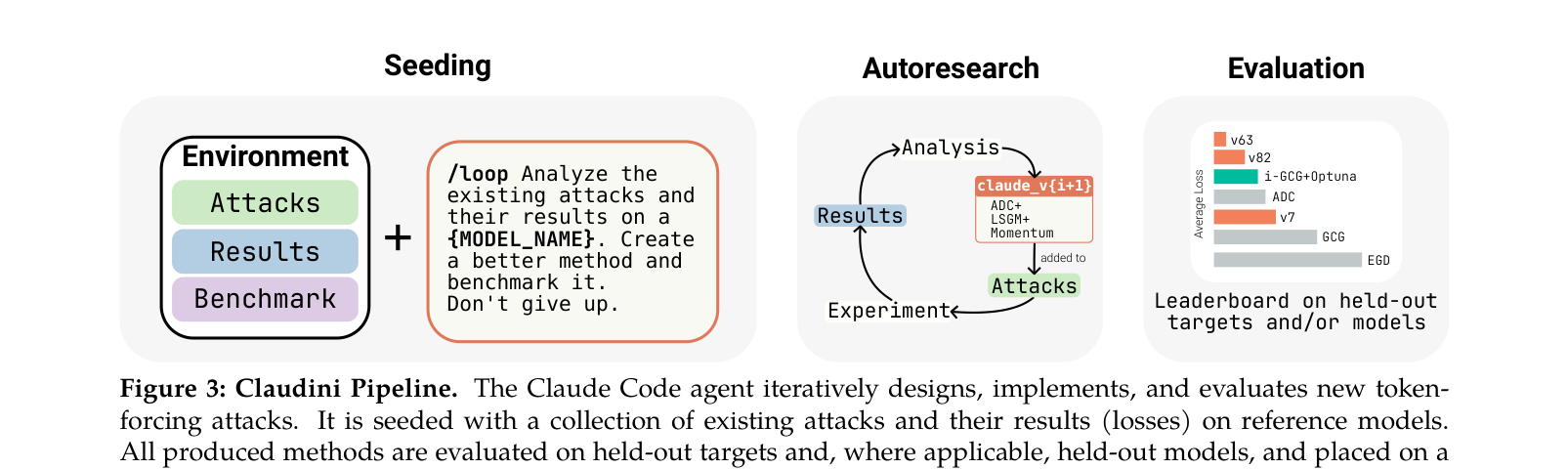 Researchers demonstrate that an autoresearch-style pipeline powered by Claude Code can autonomously discover novel adversarial attack algorithms for LLMs that significantly outperform all 30+ existing methods. The work, called Claudini, shows that incremental safety and security research can be effectively automated using LLM agents, with white-box red-teaming being a particularly well-suited domain.
