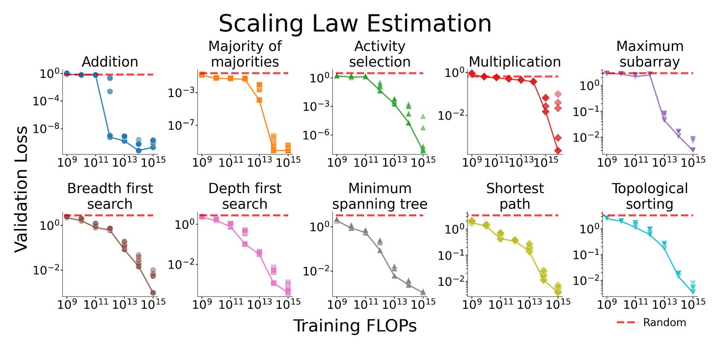 Phase transitions: Training on ten foundational algorithmic tasks reveals pronounced phase transitions that deviate from typical power-law scaling, challenging the conventional understanding of model training dynamics.