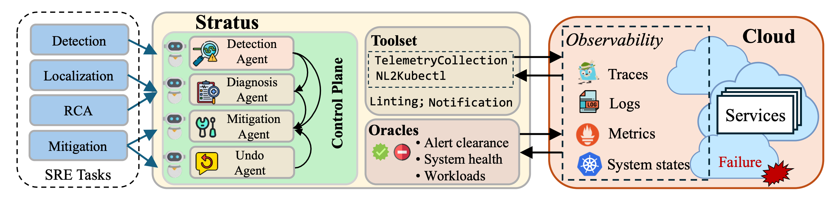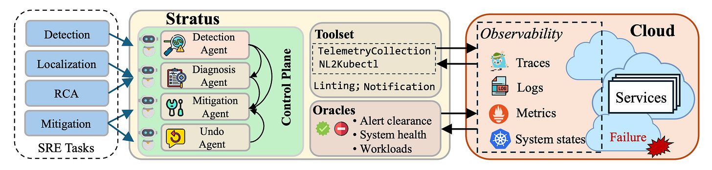 Researchers from UIUC, IBM Research, and Tsinghua present STRATUS, an LLM-based multi-agent system for autonomous Site Reliability Engineering (SRE) of cloud services. The system handles failure detection, localization, root-cause analysis, and mitigation without human intervention, outperforming state-of-the-art SRE agents by at least 1.5x on benchmark suites.