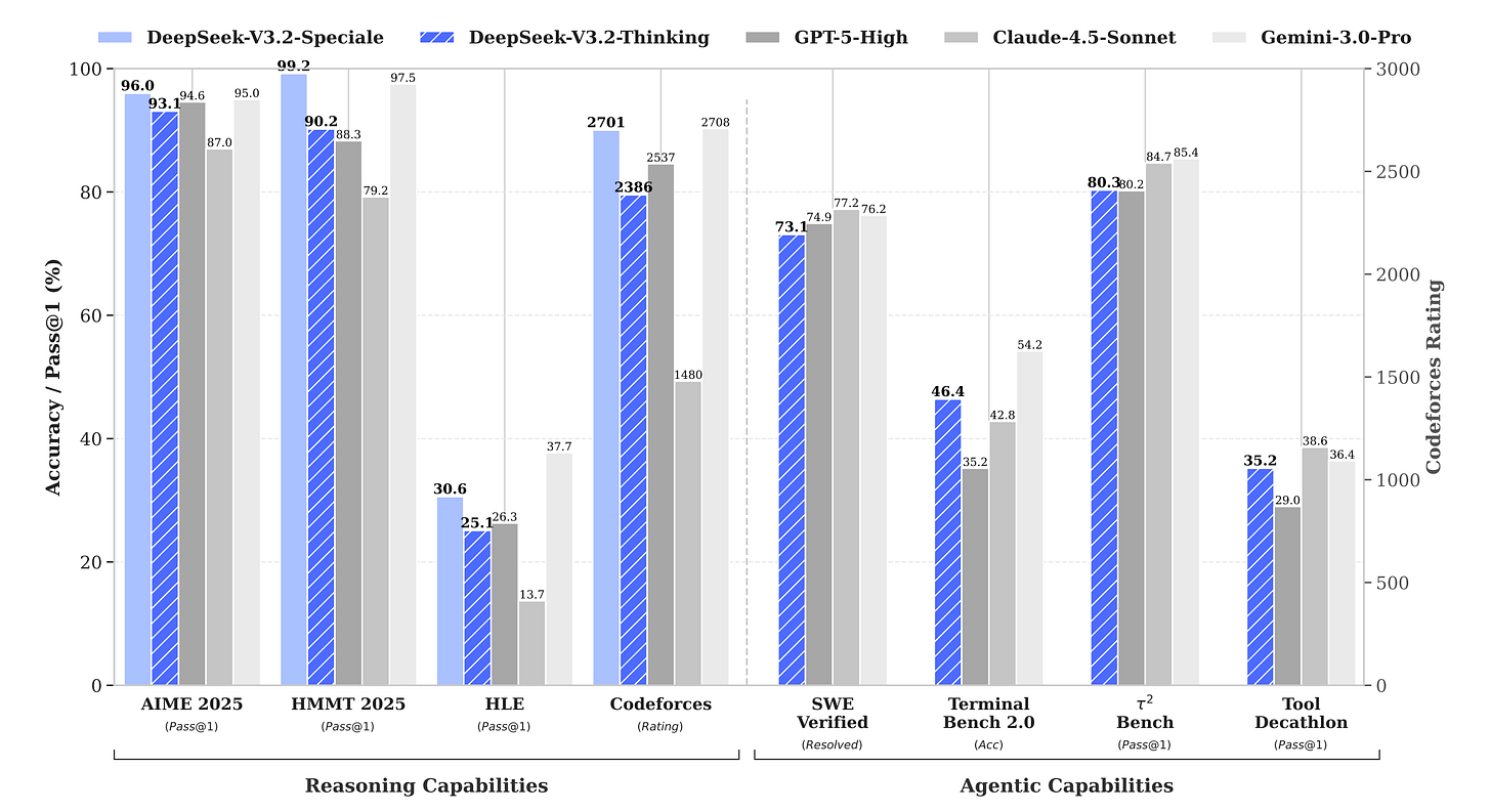 DeepSeek releases V3.2, an open model that matches GPT-5 on reasoning benchmarks while introducing significant architectural and training innovations. The high-compute variant, DeepSeek-V3.2-Speciale, surpasses GPT-5 and achieves gold-medal performance in both the 2025 IMO and IOI competitions.