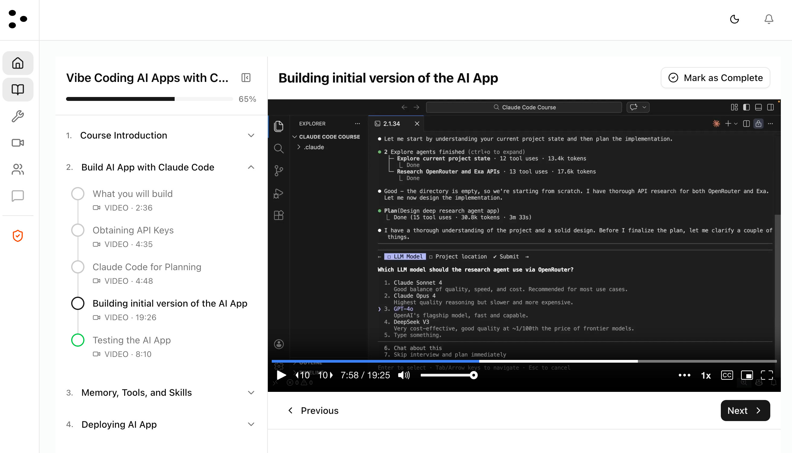Excited to announce our new on-demand course “Vibe Coding AI Apps with Claude Code“. Learn how to leverage Claude Code features to vibecode production-grade AI-powered apps.