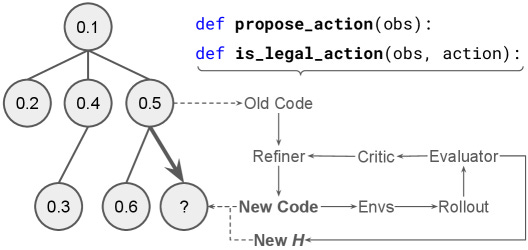 Automatic harness synthesis: Rather than building complex rule systems by hand, AutoHarness lets Gemini-2.5-Flash automatically generate a code harness through a small number of iterative refinement rounds using feedback from the game environment. The harness acts as a programmatic constraint layer between the agent and the environment.