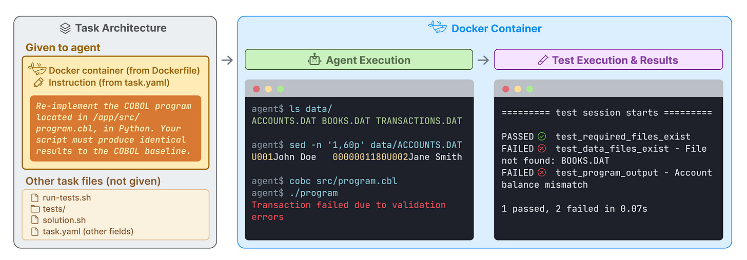 Open evaluation infrastructure: The dataset and evaluation harness are publicly available at tbench.ai, enabling developers and researchers to benchmark their systems and contribute to advancing agent capabilities in terminal environments.